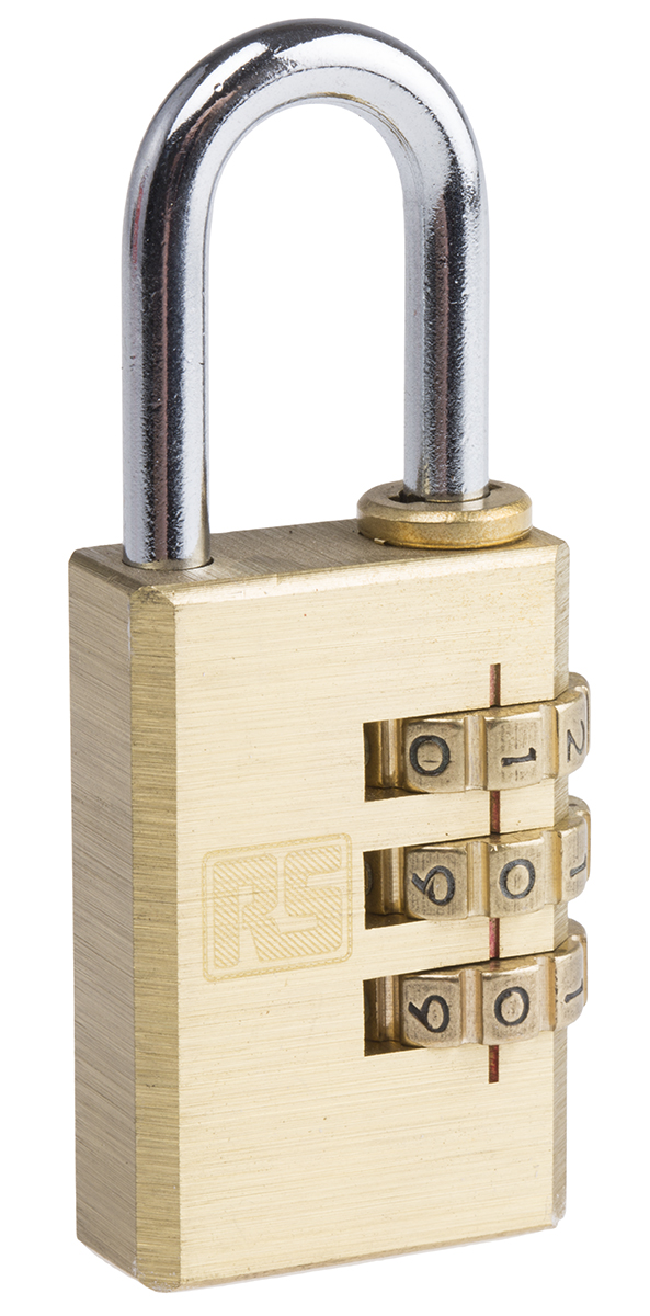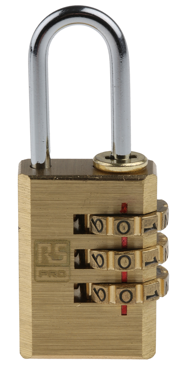Kłódka szyfrowa średnica szekli: 3mm RS PRO Kłódka szyfrowa W budynkach, na zewnątrz mosiężna Mosiądz