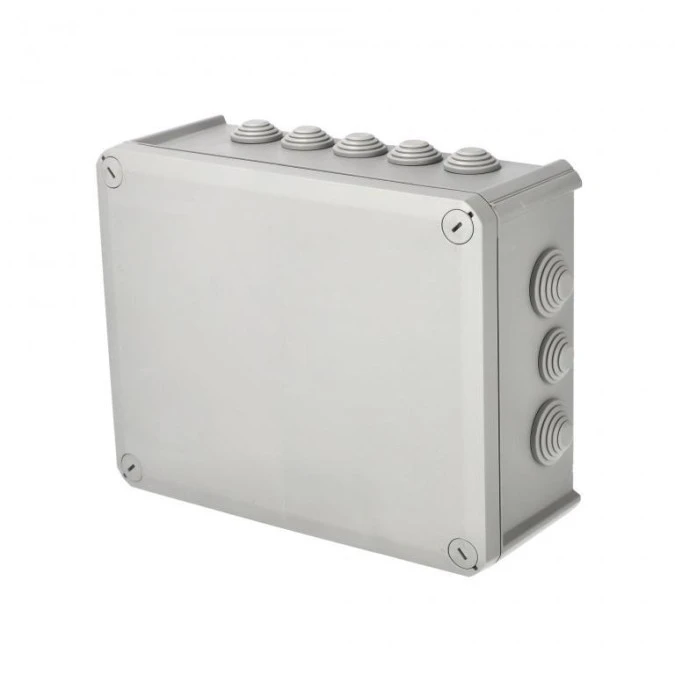 7. Puszka hermetyczna natynkowa z dławikami 240x190x95mm bezhalogenowa, odporna na UV, dekiel przykręcany IP66 szary 22.36