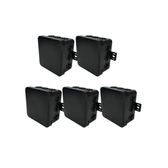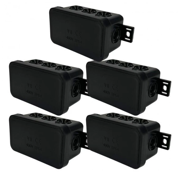 11. Puszka hermetyczna natynkowa elastyczna 80x45x41mm 8-wlotowa, zamknięcie na klik IP54 czarna EDO 5 szt. 22.58