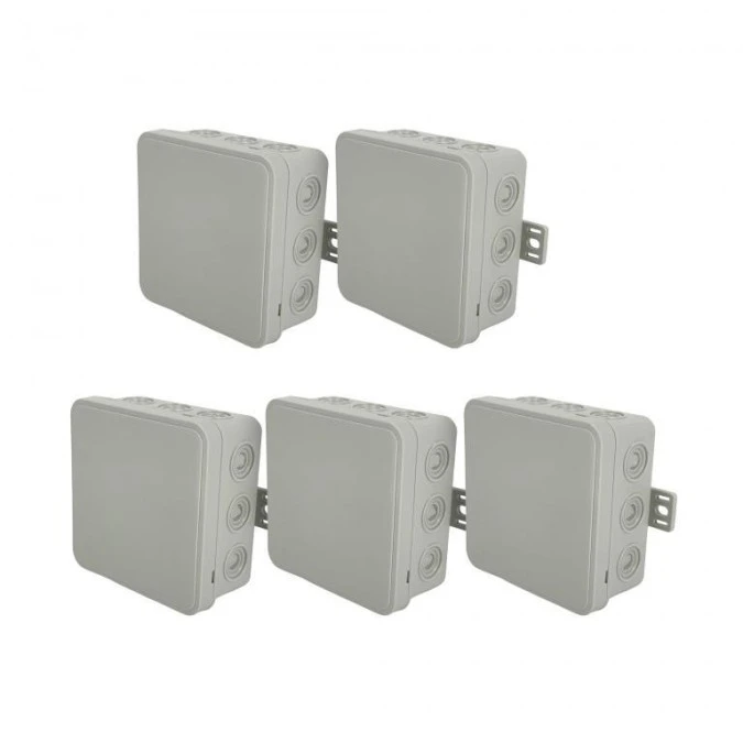Puszka hermetyczna natynkowa elastyczna 85x85x41mm 12-wlotowa, zamknięcie na klik IP54 szara EDO 5 szt.