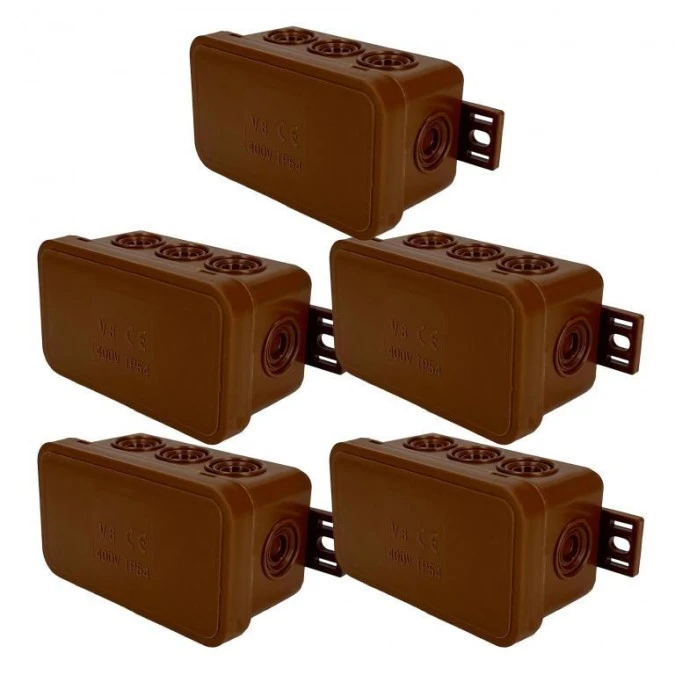 Puszka hermetyczna natynkowa elastyczna 80x45x41mm 8-wlotowa, zamknięcie na klik IP54 brązowa EDO 5 szt.