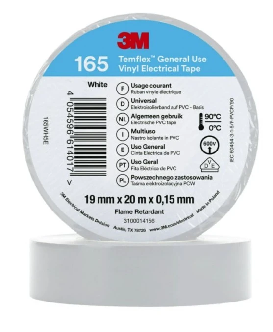 Taśma Izolacyjna 19Mm X 20M Pvc Temflex 165 Biała 7100184808