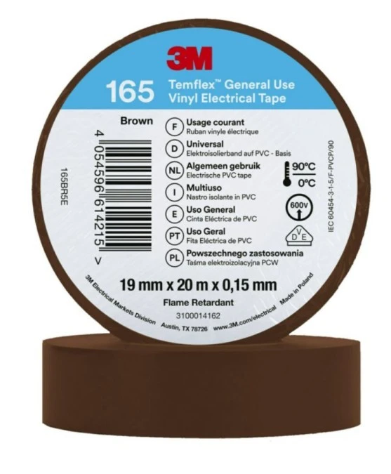 4. Taśma izolacyjna 19mm x 20m PVC Temflex 165 brązowa 7100184802 6.90