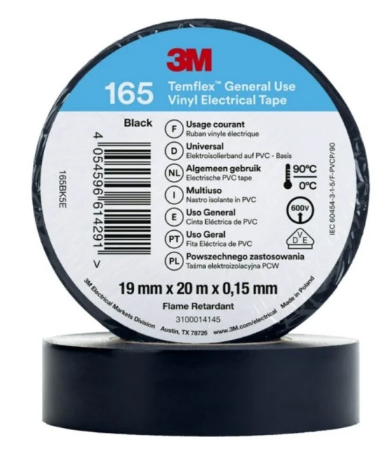 3. Taśma izolacyjna 19mm x 20m PVC Temflex 165 czarna 7100184800 6.90