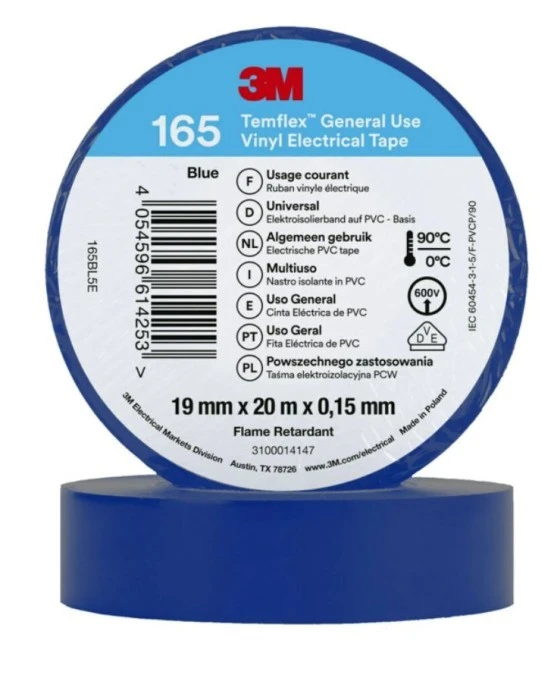 Taśma izolacyjna 19mm x 20m PVC Temflex 165 niebieska 7100184801