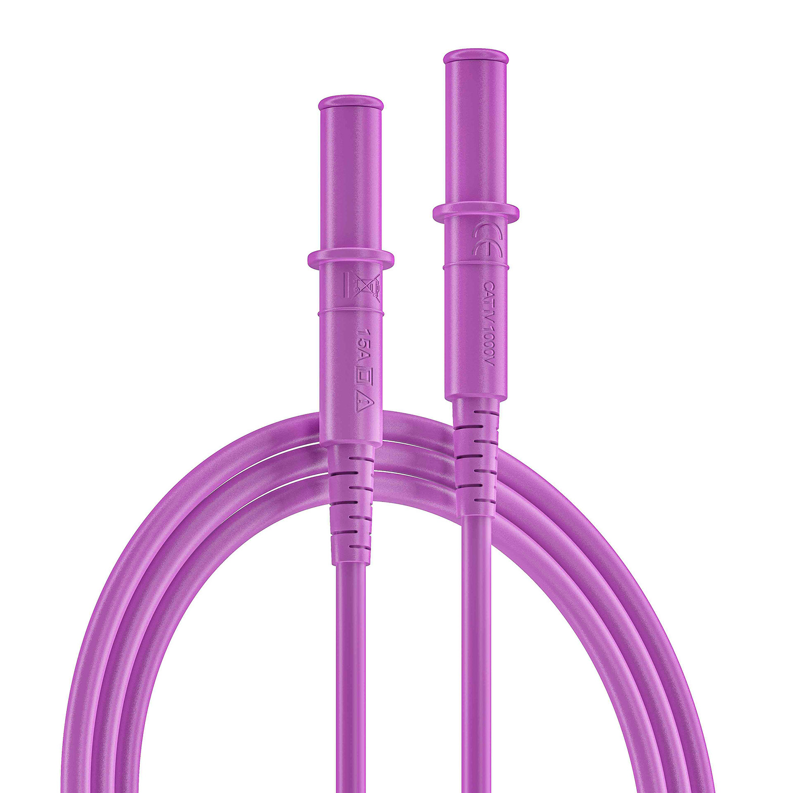 1. Przewody pomiarowe, Silikon, 10A, 1000V, kolor: Fioletowy, dł. 250mm, CAT II 1000V, RS PRO 24.12