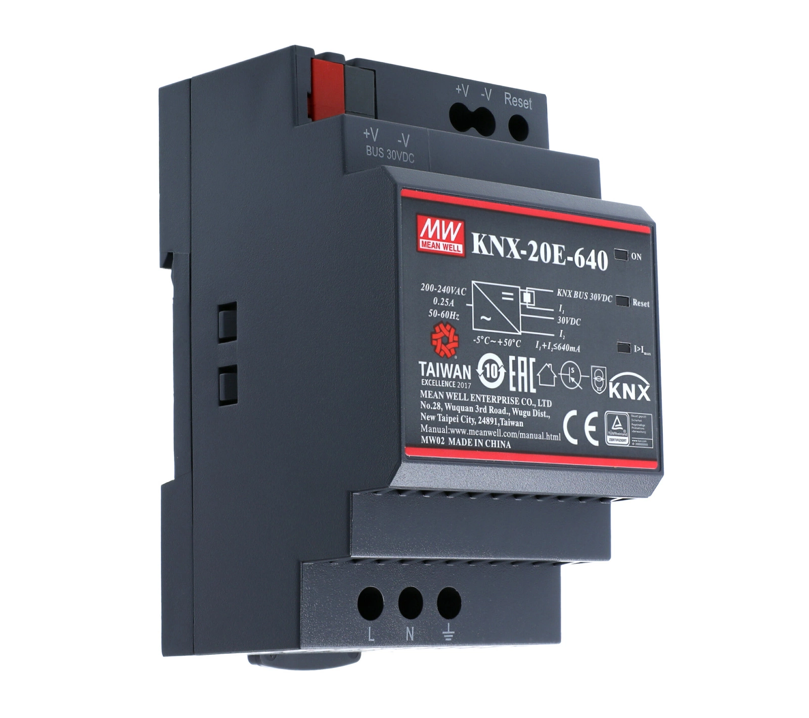 Zasilacz na szynę DIN z obsługą standardu KNX 30V 0,64A 19,2W MEAN WELL | KNX-20E-640