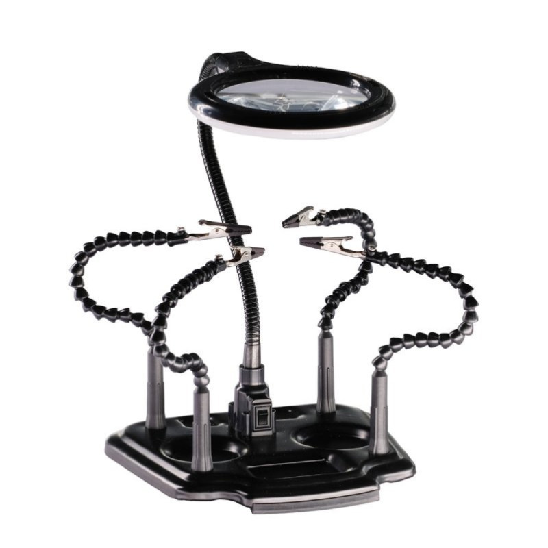 TRZECIA RĘKA UCHWYT Z LUPĄ NA WYSIĘGNIKU +PODSTAWKA I AKCESORIA