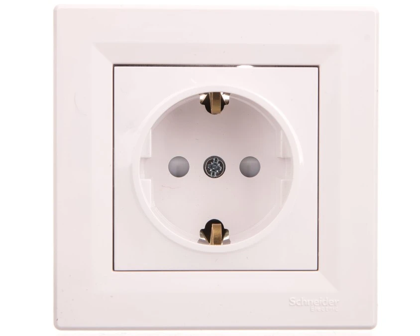 Gniazdo pojedyncze Asfora z/u z przesłonami białe z ramką EPH2800221
