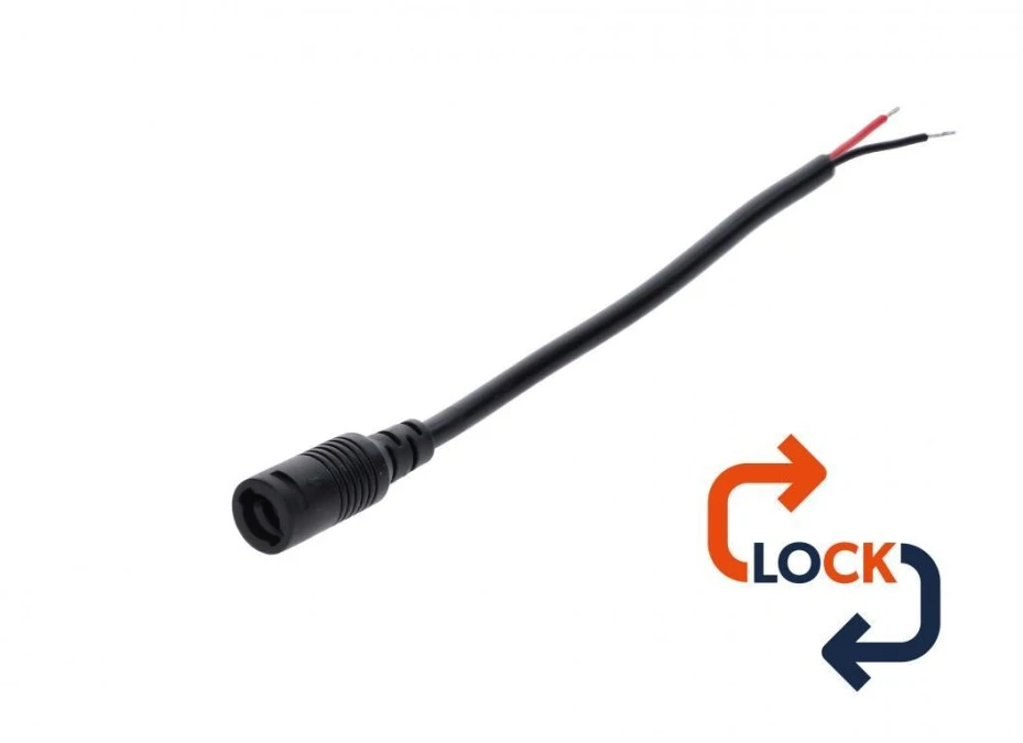 Wtyk DC 5.5x2.1 przewód czarny 15cm 22awg z blokadą