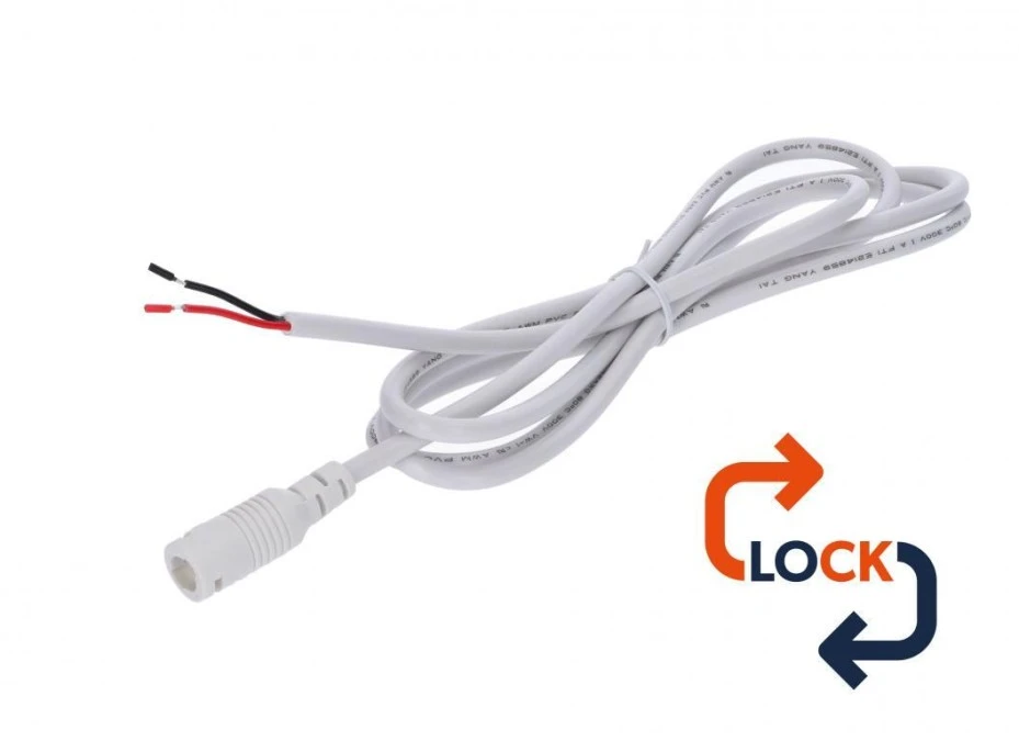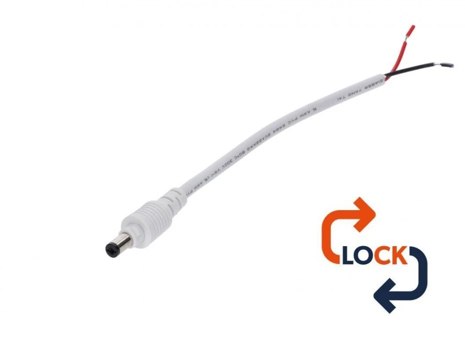 Wtyk DC 5.5x2.1 przewód biały 15cm 22awg z blokadą