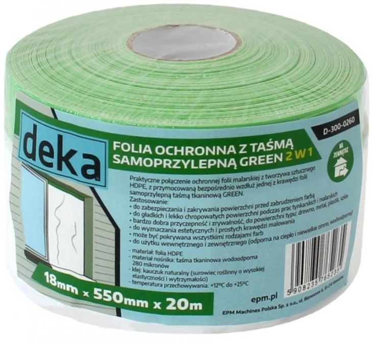 FOLIA OCHRONNA Z TAŚMĄ ZIELONĄ DO ZEWNĄTRZ 55CM*20M
