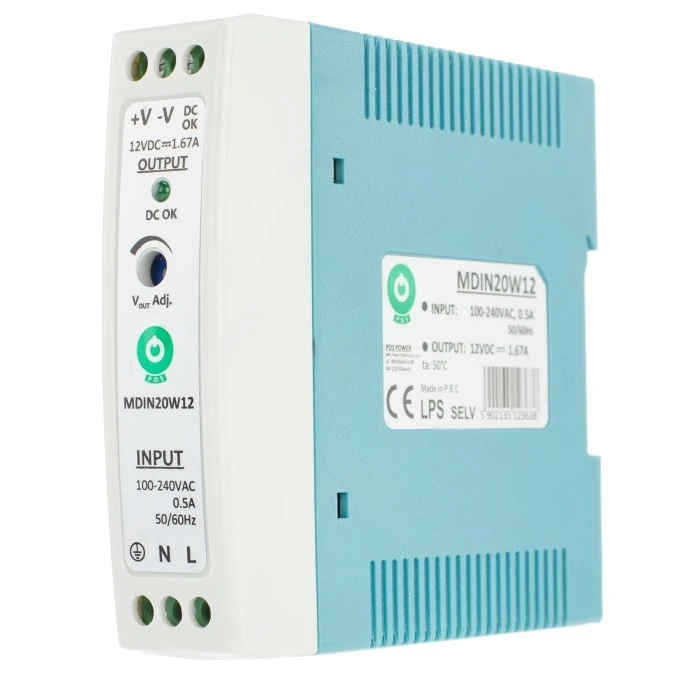 Zasilacz POS na szynę DIN 20W 12V DC 1,67A MDIN20W12