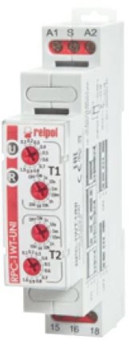 14. Przekaźnik czasowy 1P 1sek-10dni 12-240V AC/DC 50/60 Hz załączenie przedłużane RPC-1WT-UNI 863191 156.92