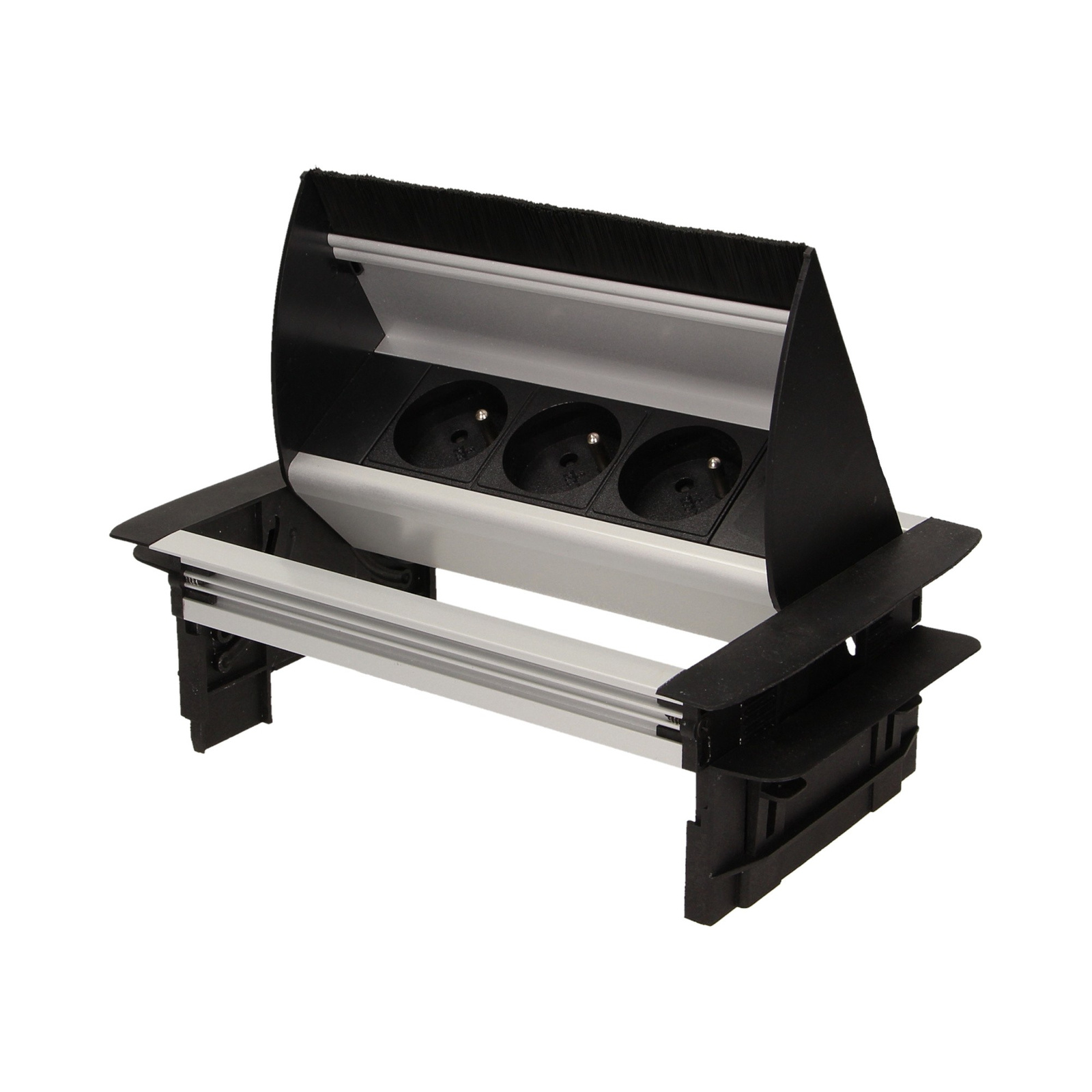 Gniazdo meblowe wpuszczane w blat ze szczotką przeciwkurzową i przewodem 1.8m. 3x2P+Z OR-AE-1361