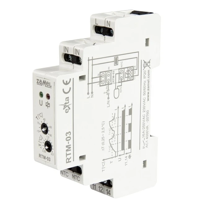 Regulator temperatury od -10 do 90 st. C jednomodułowy z nastawą histerezy 0,25-2 st. C RTM-03 EXT10000251