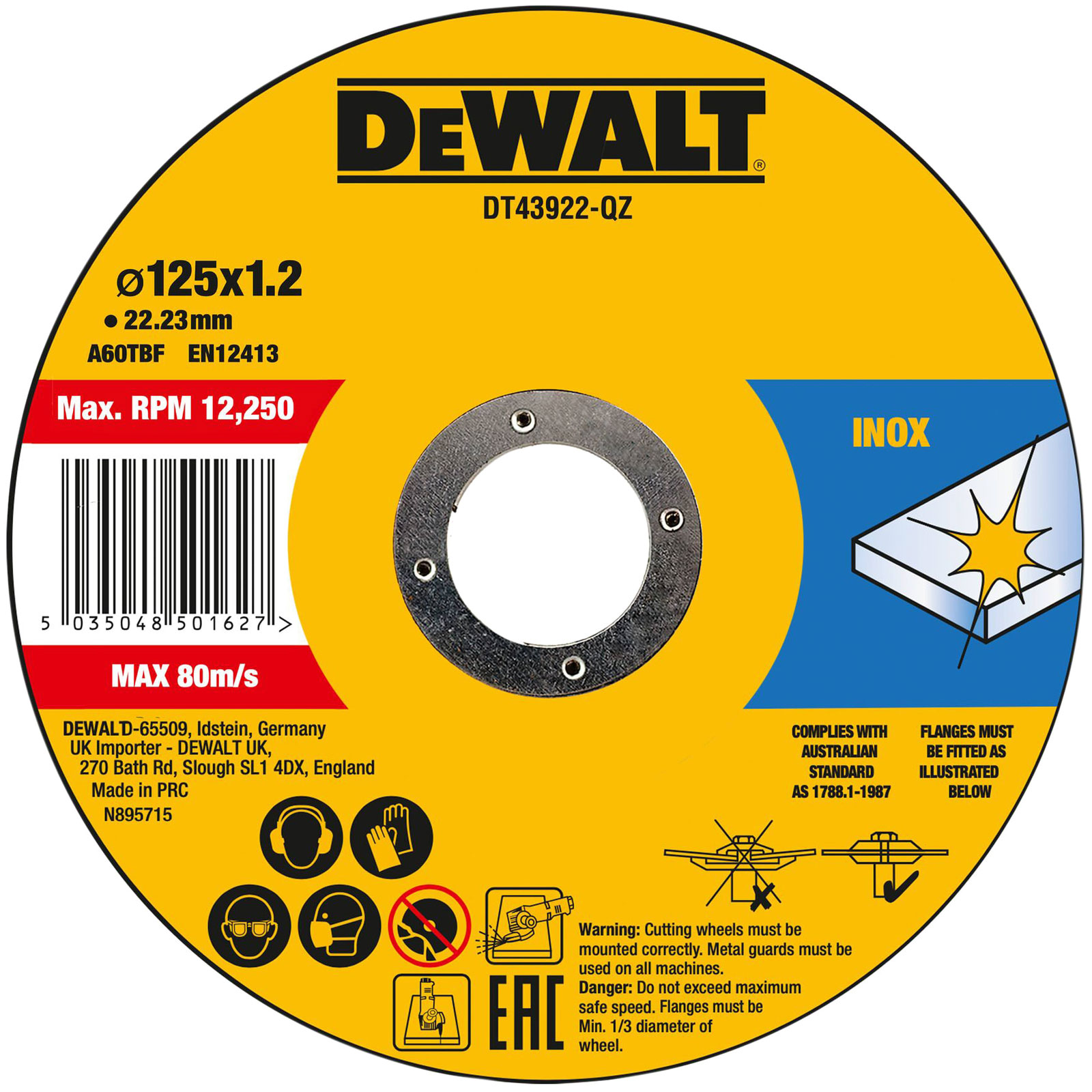 DEWALT DT43922-QZ Metal Cutting Disc 125 X 1.2 X 22.23mm (Pack of 10)
