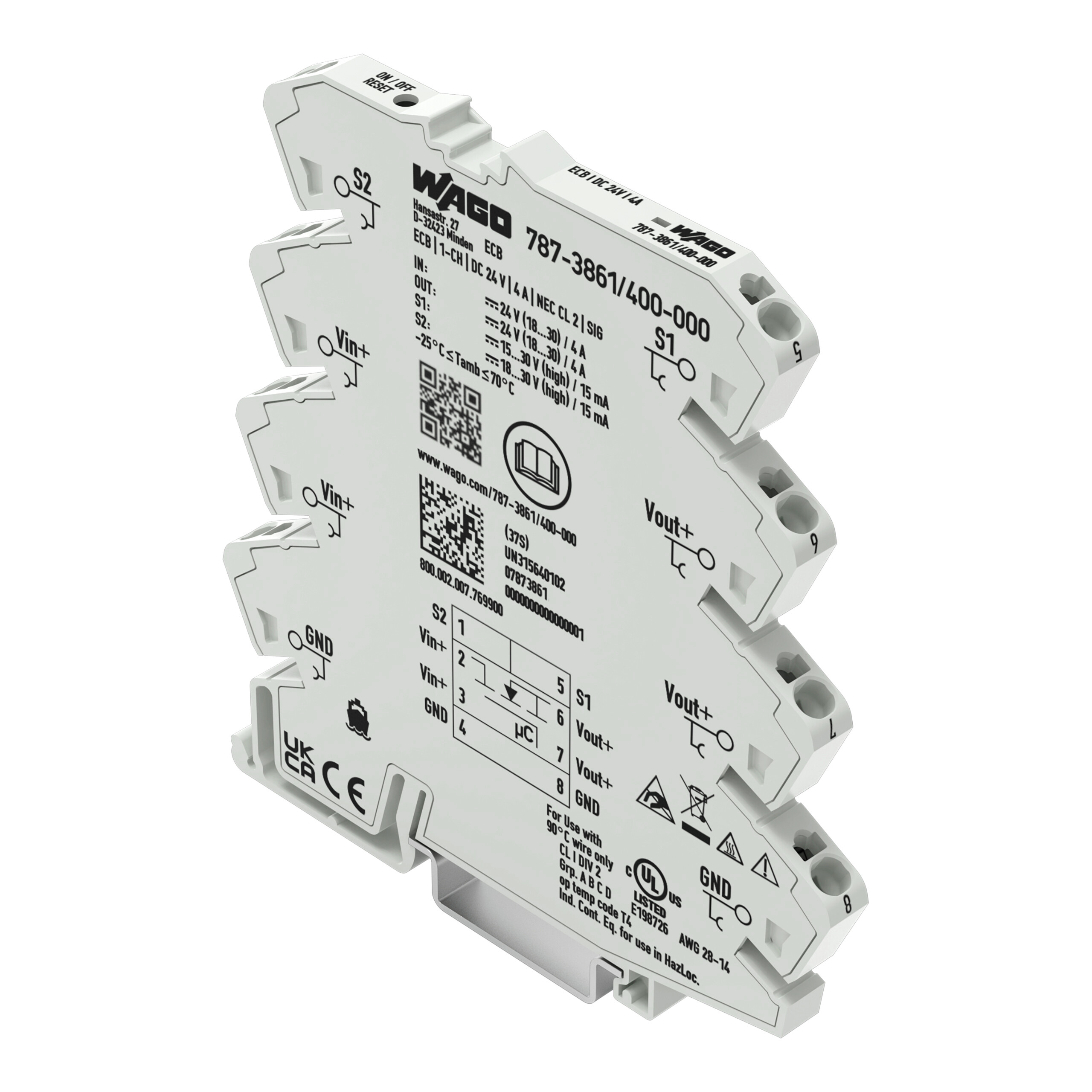Elektroniczny wyłącznik obwodu, 787, 0.5 → 4A, Szyna DIN, kanały: 1