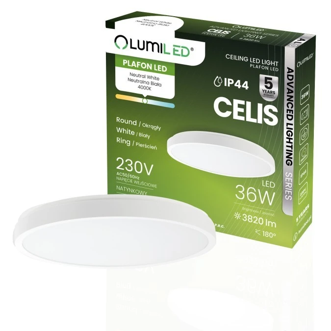 Plafon LED Lampa Sufitowa Natynkowa 36W 4000K 3820lm 106 lm/W CELIS Okrągły IP44 Biały Ring ALS LUMILED