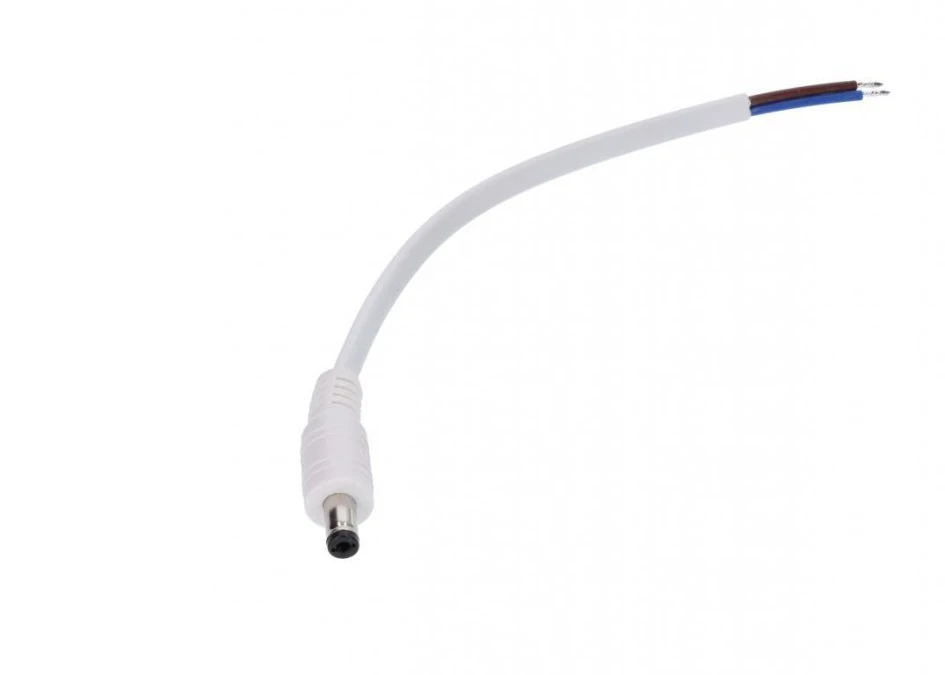 Wtyk DC 5.5x2.1 5A przewód biały 15cm 18awg