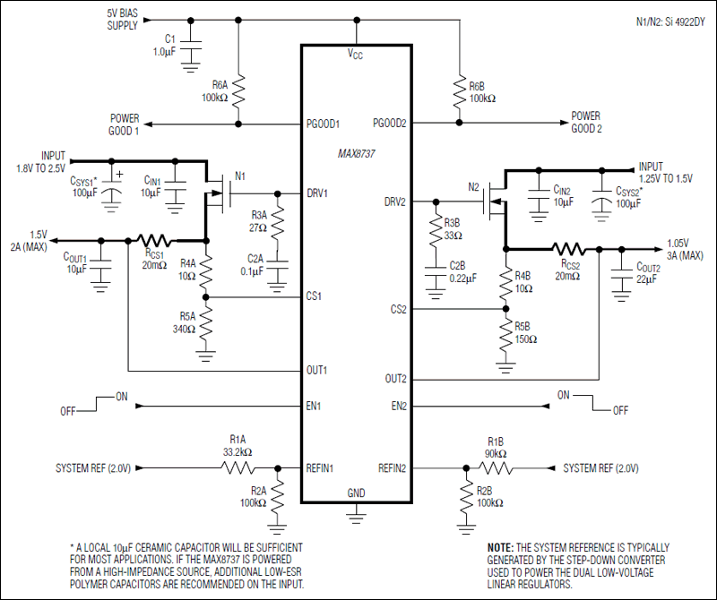 Dual, Low-Voltage Linear Regulator Controllers with External MOSFETs
