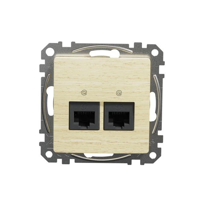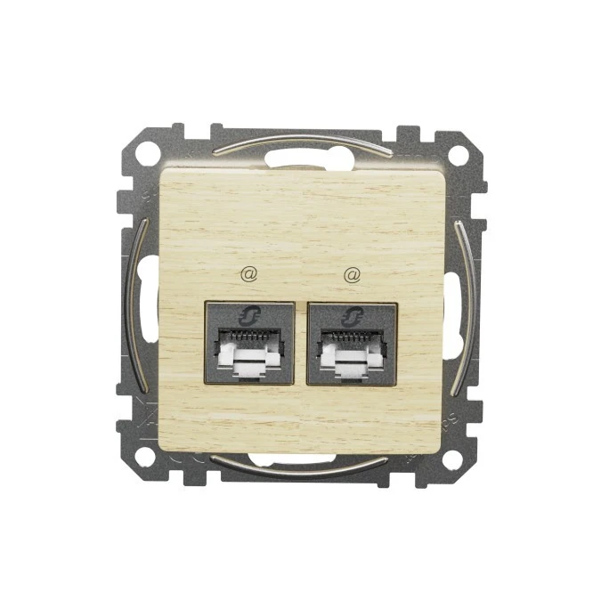 Gniazdo komputerowe podwójne RJ45 kat. 6 STP, brzoza, efekt drewna, Sedna Design i Elements SDD180462