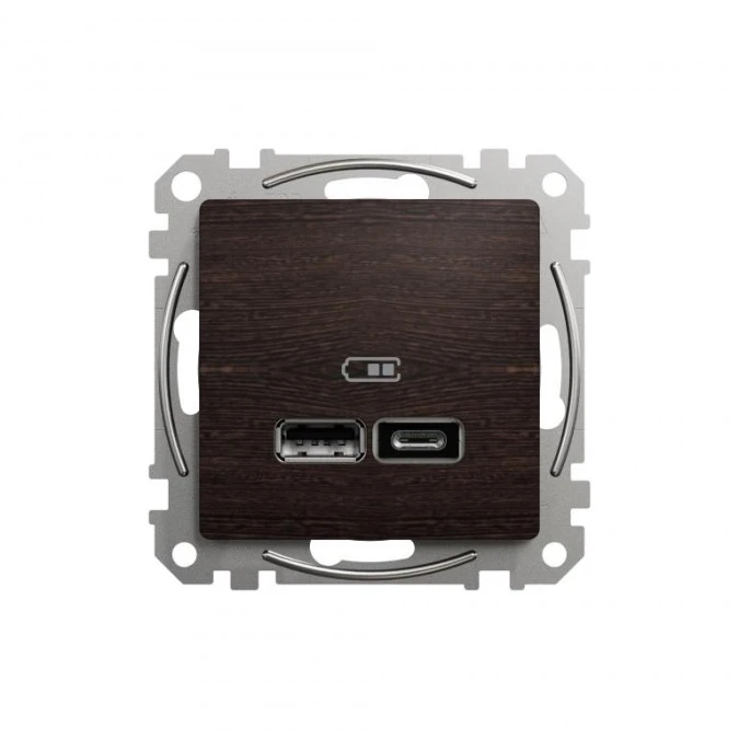 Gniazdo ładowania USB typ A+C 2,4A, wenge, efekt drewna, Sedna Design i Elements SDD181402