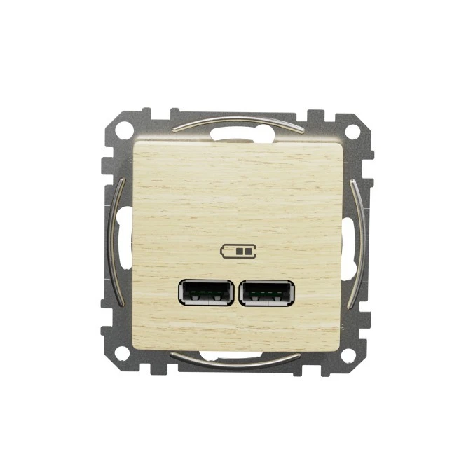Gniazdo ładowania USB typ A+A 2,4A, brzoza, efekt drewna, Sedna Design i Elements SDD180401