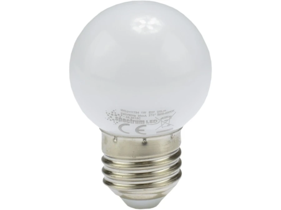 Żarówka LED E27 230V 1W 100lm 2700K kula barwa WW biała ciepła SPECTRUM LED