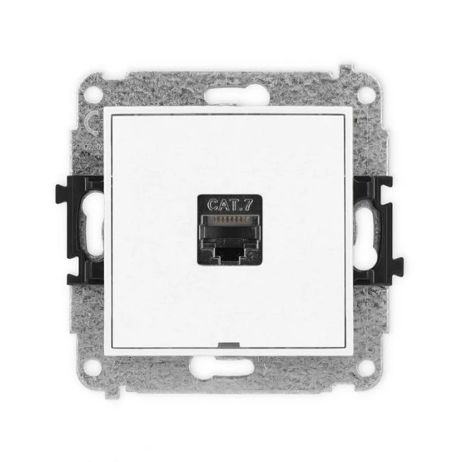 MINI Mechanizm gniazda komputerowego pojedynczego 1xRJ45, kat. 7, ekranowane, 8-stykowy, bez pola opisowego biały mat 25MGKBO-9