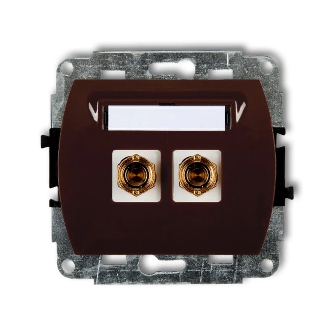 12. DECO Gniazdo głośnikowe pojedyncze (typu banan - czerwony i czarny pozłacany 4 mm2 do lutowania) brązowy metalik 9DGG-3 KARLIK 54.56