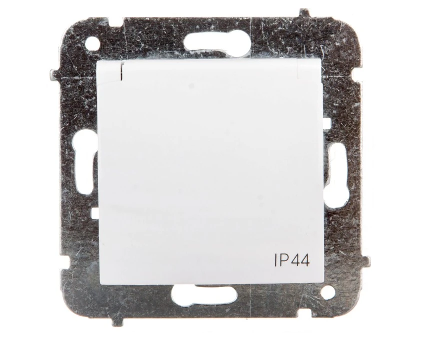1. CARLA Gniazdo pojedyncze z/u IP44 z klapką i przesłonami białe 1736-10 16.86