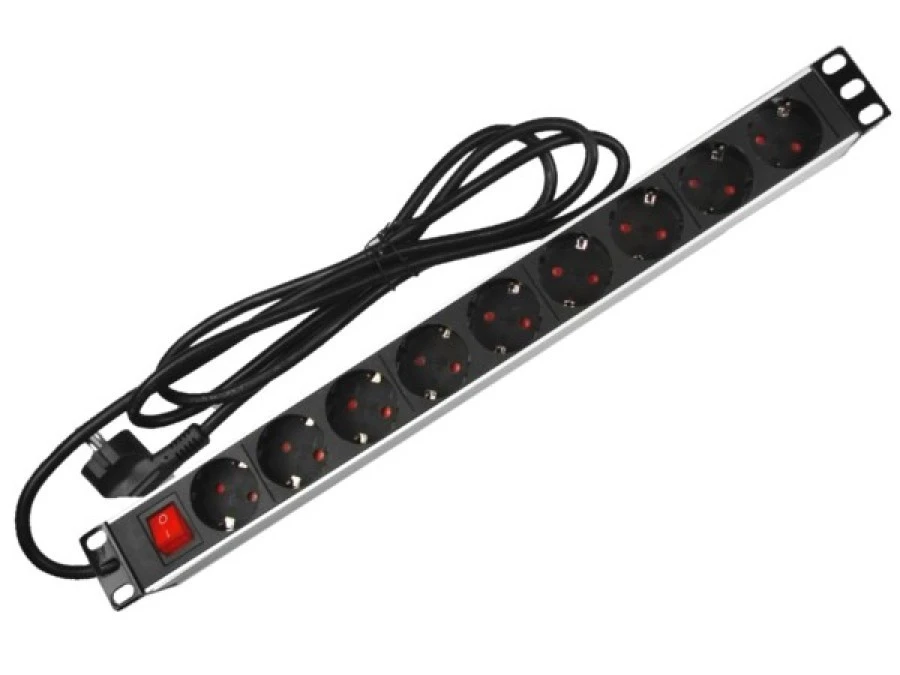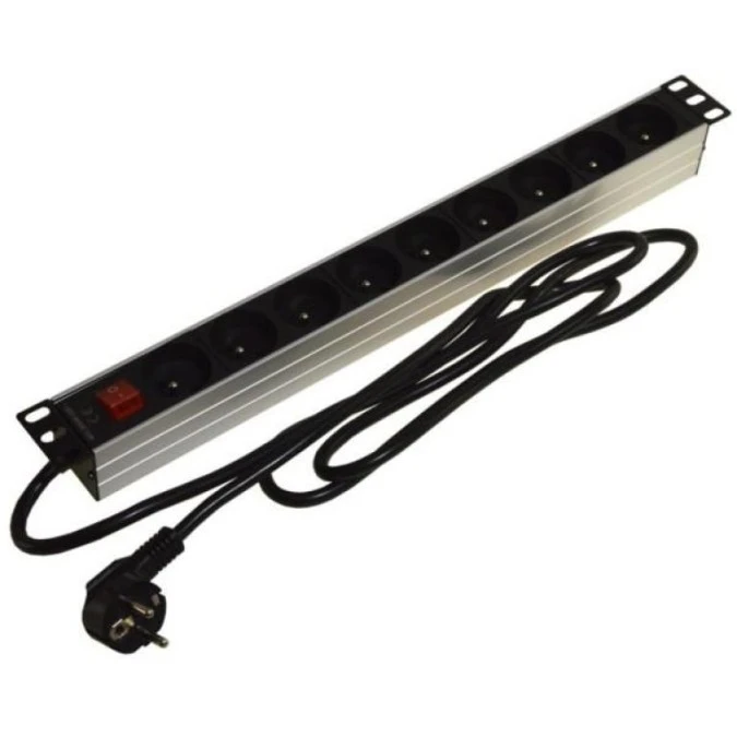 Listwa zasilająca rack 19", 9 gniazd, z wyłącznikiem