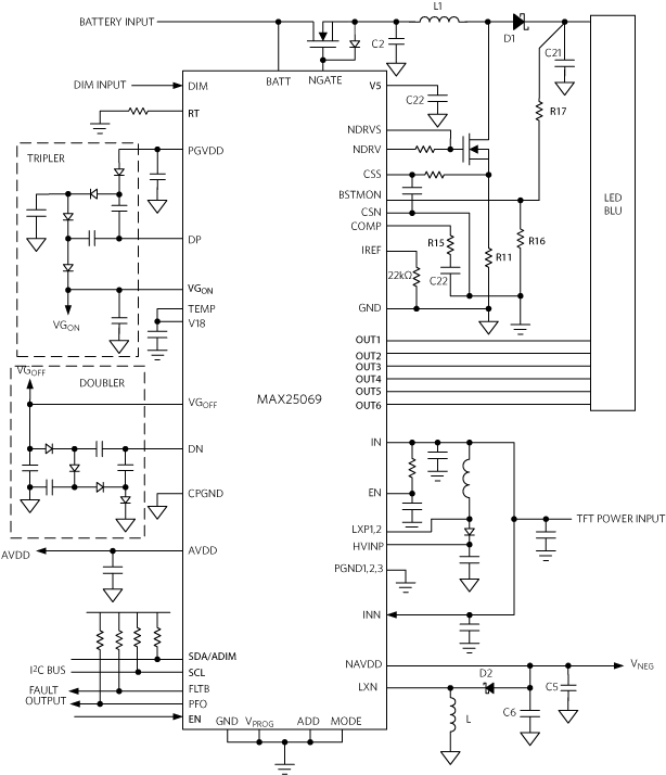 11. Automotive, IC-Controlled, 6-Channel, 150mA Backlight Driver and 4-Output TFT-LCD Bias Sample