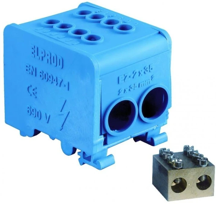 7. Blok rozdzieczy 1-torowy (3x16mm²/3x16mm²) LZ1*35/35 mocowanie na TS 35, niebieski 84169003 9.53
