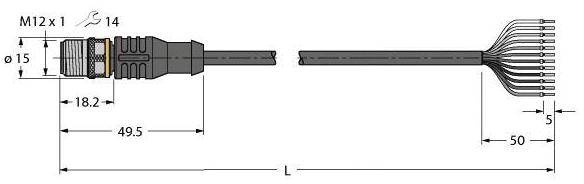 Turck 6625346 Kabel połączeniowy czujnika/aktuatora RSC12T-5/TXL, piny: 12, 5 m, 1 szt.