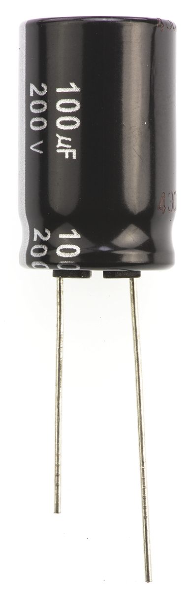 Kondensator 100μF 200V dc Radialny, Otwór przelotowy Panasonic roztaw: 7.5mm 16 (Dia.) x 25mm