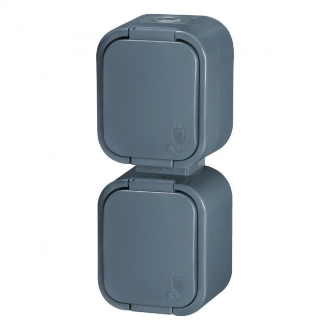 Gniazdo podwójne n/t 2x2P+Z, bryzgoszczelne z klapką, pionowe B2, IP54, NT-6B2/P, szary,OR-OE-7806/V/G