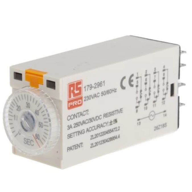 13. Przekaźnik czasowy zwłoczny jednofunkcyjny 2 → 60s 4PDT 4-stykowy 4PDT 230V ac 245.62