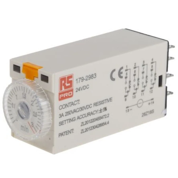 7. Przekaźnik czasowy zwłoczny jednofunkcyjny 0.1 → 3min 4PDT 4-stykowy 4PDT 24V dc 241.03