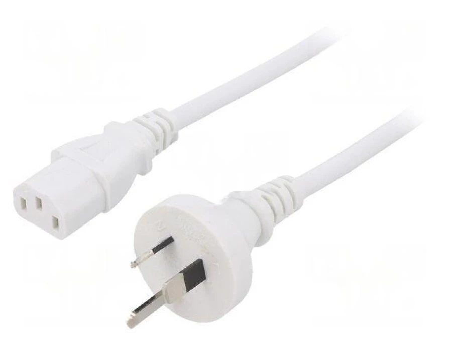 7. Kabel: 3x1mm2, AS/NZS 3112 (I) wtyk,IEC C13 żeński, 1m, 10A LT-423+501 H05VV-F 3X1.0 WHT 1M 23.74