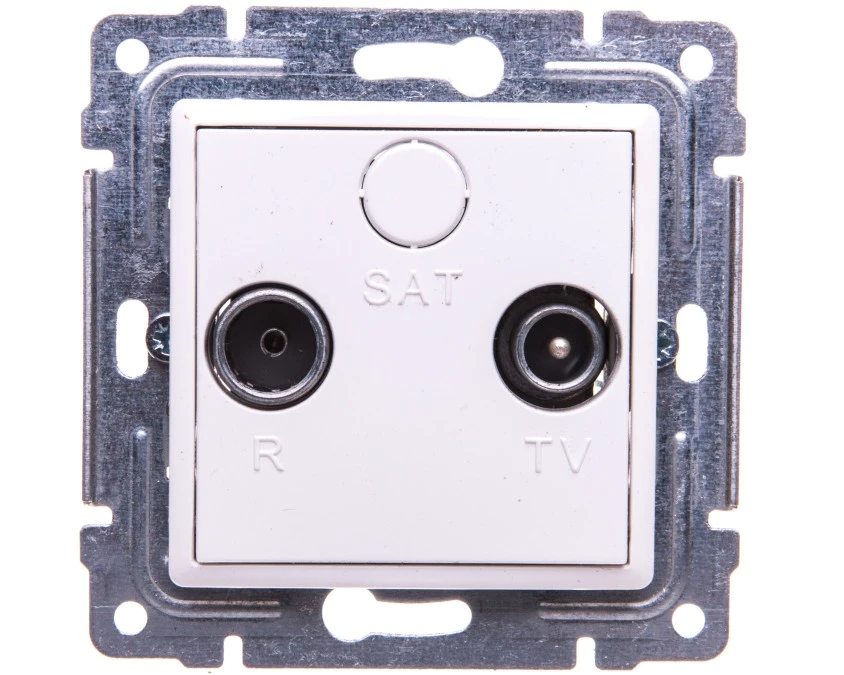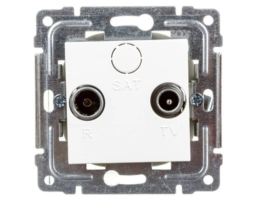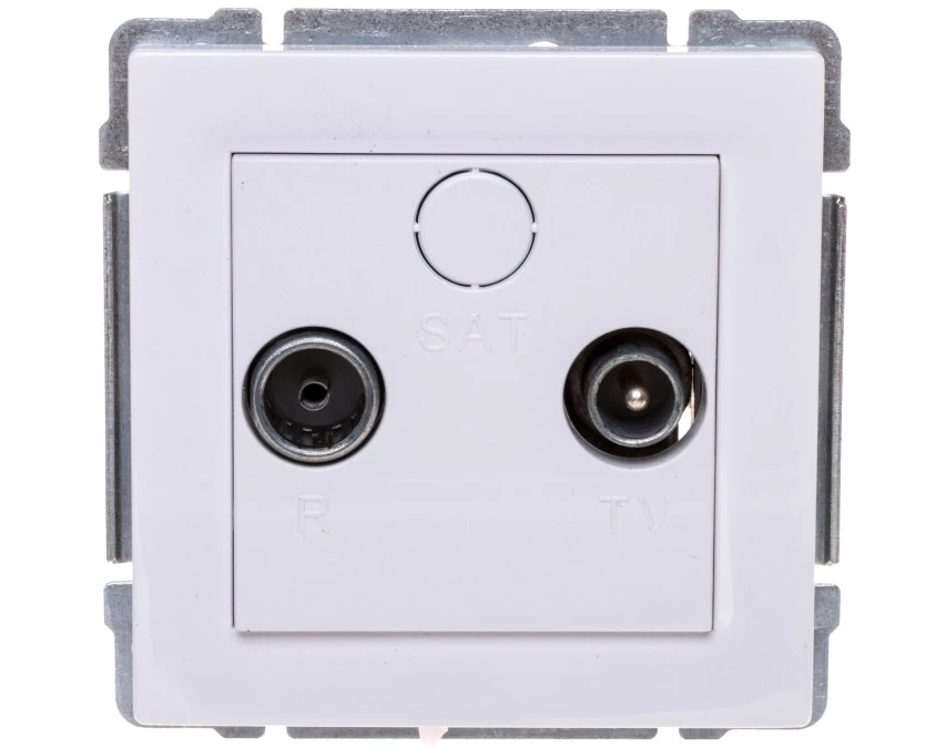 SIMON 10 Gniazdo antenowe RTV-SAT przelotowe tłum.SAT -8dB TV-10dB R-12dB białe CASP.01/11 KONTAKT SIMON