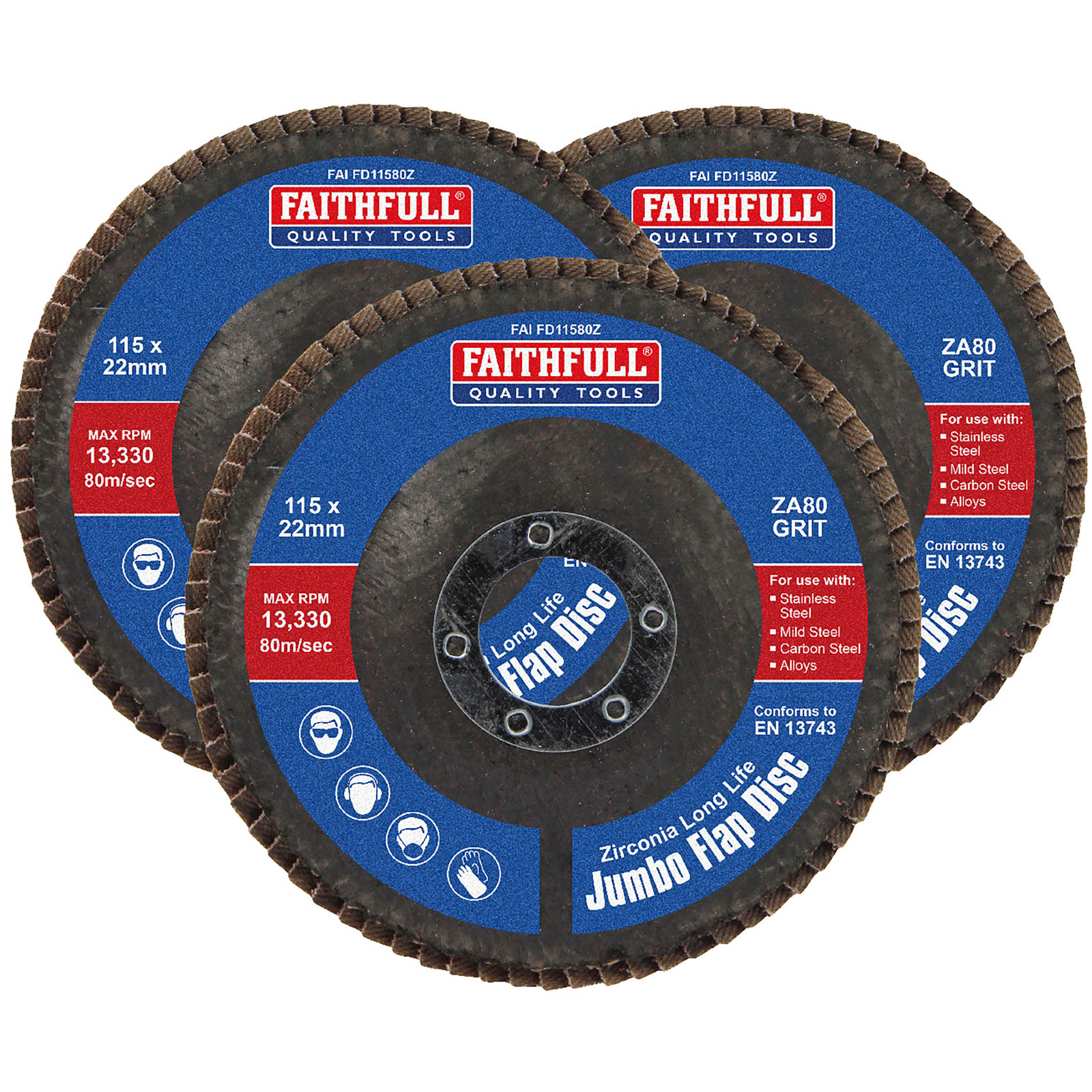 5. Faithfull FAIFD11580Z3 Zirconia Abrasive Jumbo Flap Disc 115 x 22mm 80 Grit 3Pk 94.03