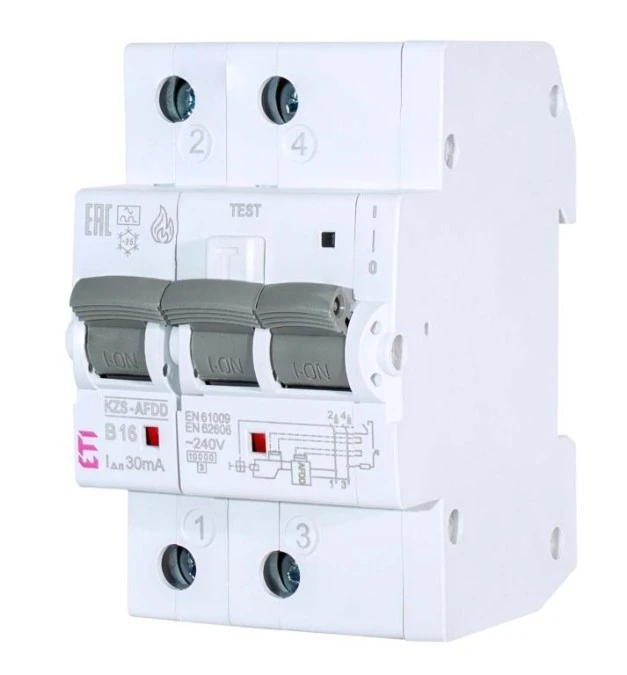 6. Wyłącznik różnicowoprądowy z zabezpieczeniem nadprądowym i z detekcją zwarć łukowych. KZS-AFDD 3M2p A B15/0.03 002173819 1104.05