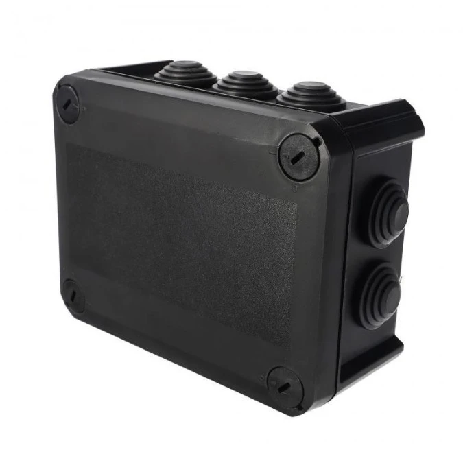 Puszka hermetyczna 150x115x65mm natynkowa z dławikami bezhalogenowa, odporna na UV,dekiel przykręcany czarny IP66