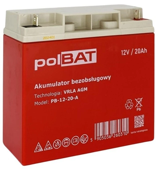 Akumulator VRLA AGM 12V 20Ah (żywotność 3-5lat) PB-12-20-A