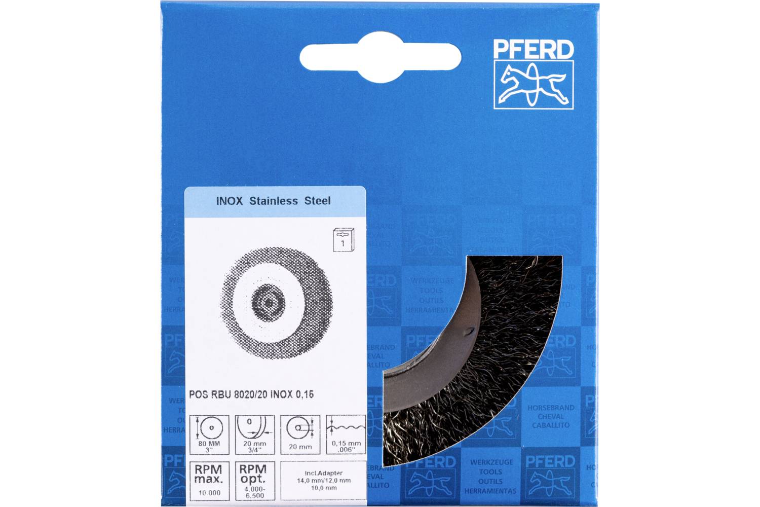 PFERD TOOLS Szczotka okrągła POS szeroka niesplątana RBU Ø80x20xzmienny otwór drut ze stali nierdzewnej Ø0,15 blok szlif