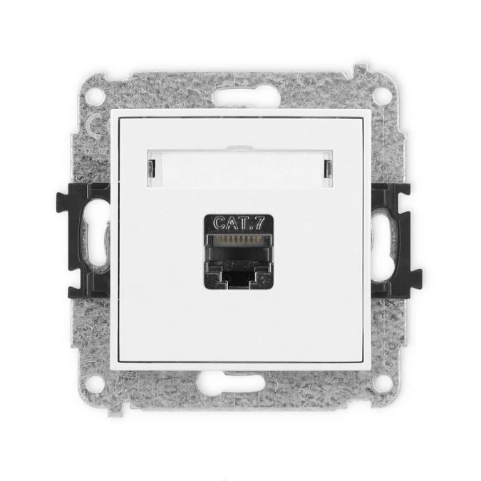 7. MINI Mechanizm gniazda komputerowego pojedynczego 1xRJ45, kat. 7, ekranowane, 8-stykowy biały mat 25MGK-9 112.75