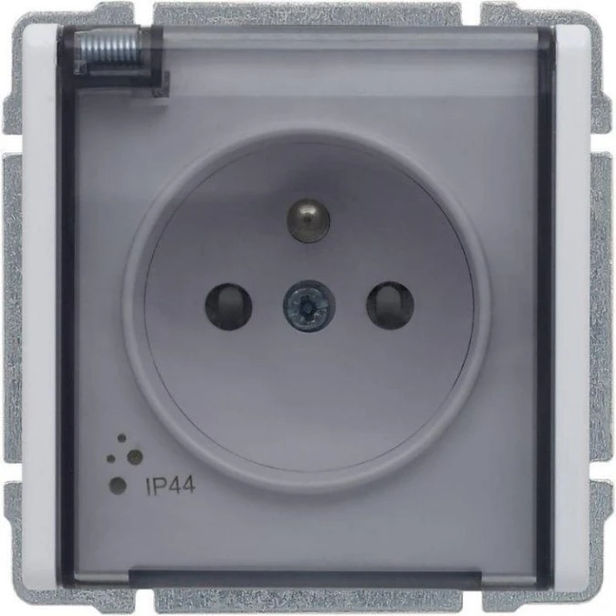 8. KOS 66 INWEST Gniazdo bryzgoszczelne poj z uziemieniem z przesłoną torów prądowych bez ramki 16A 250V klapka w kolorze osprzętu 2436.63