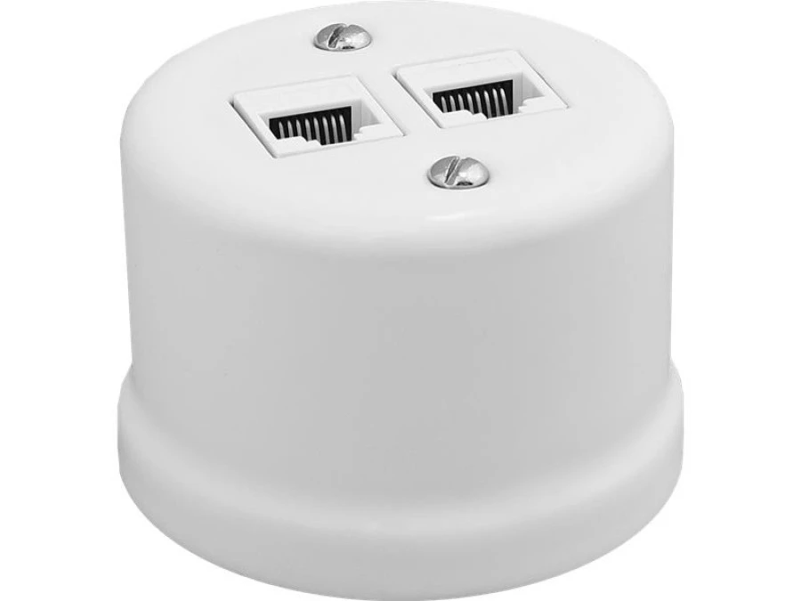 13. Gniazdo LAN natynkowe 2xRJ45 kat.5e Retro ceramic, białe 73.20